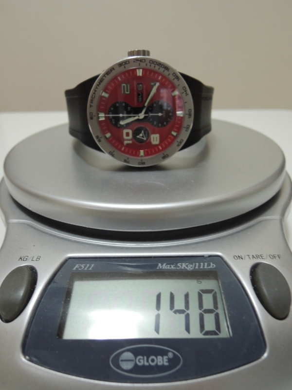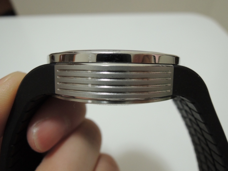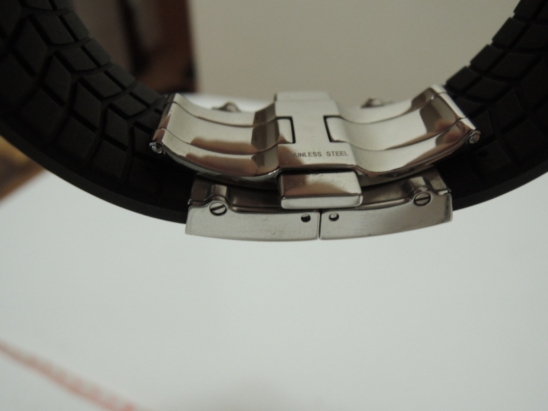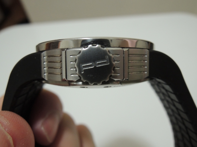Ouch! I can't wear this watch for longer than 3 hours at a time before I feel its unpleasant clasp digging into my flesh. The watch is heavy for a rubber strapped watch. Like the Bvlgari, the watch feels unbalanced on my wrist. On the former, it is manageable and only noticeable after many hours of wear. On the PD, however, it's noticeable almost right away.