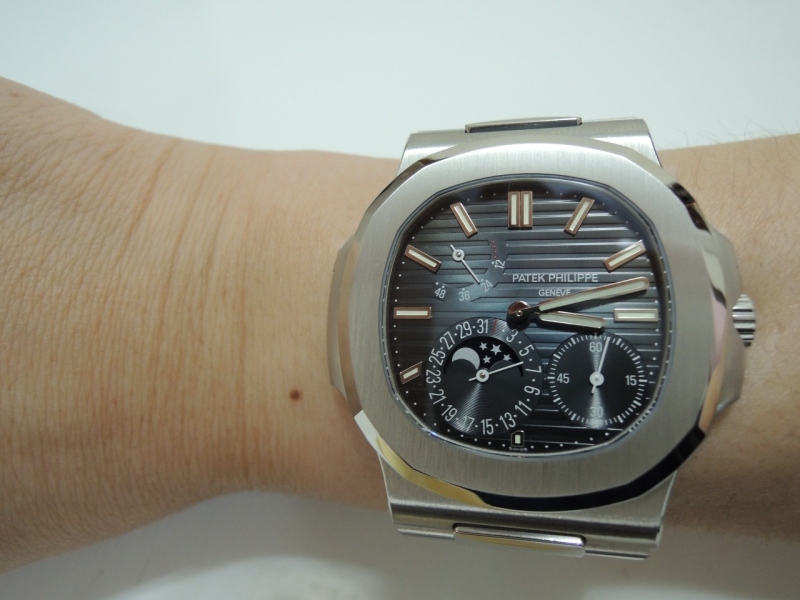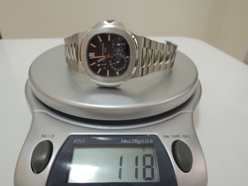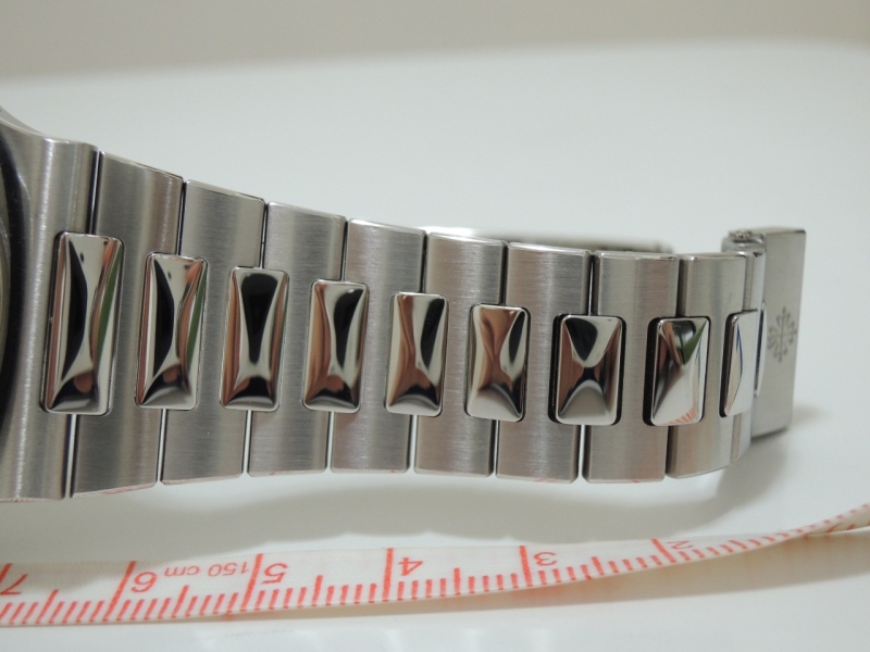 As posted earlier in my "New style link on the Nautilus", my bracelet was replaced. The polished links are now smoothly angled and as I described earlier, the new bracelet seems to be lighter.