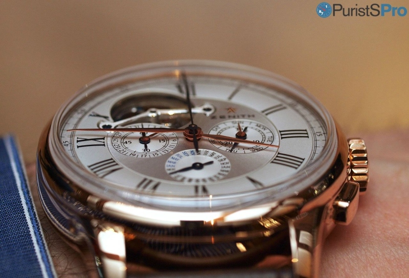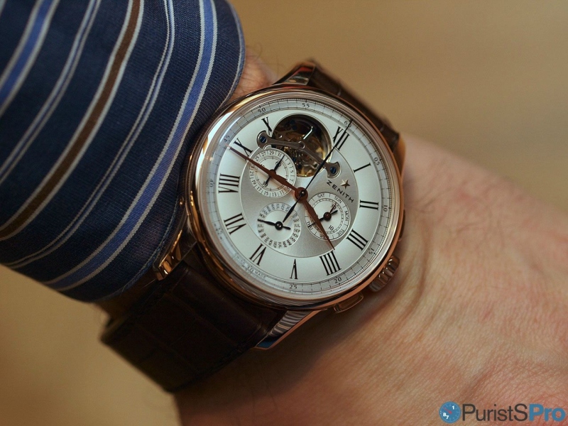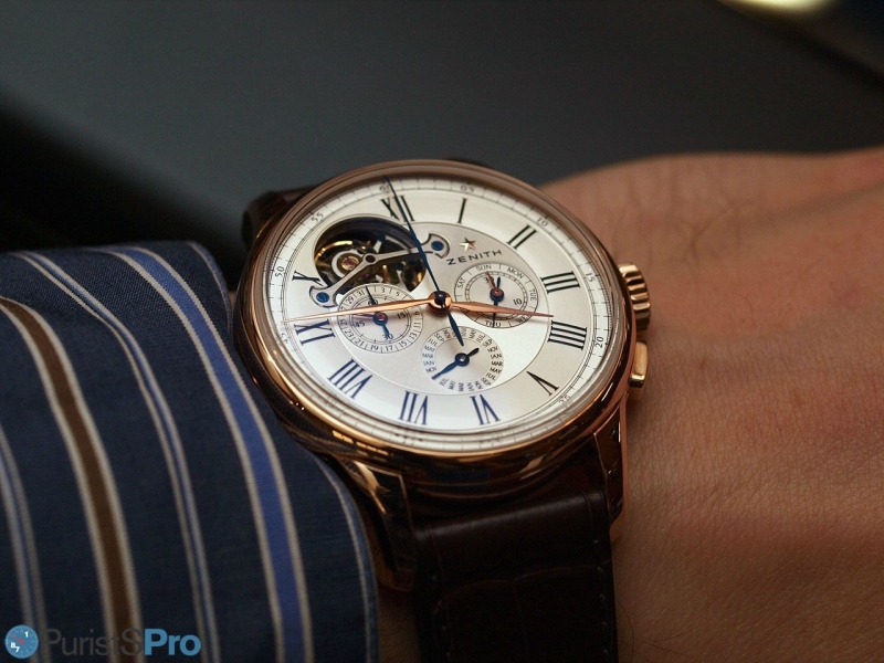 It is a watch for relaxed moments of pleasure. Those are rare, particularly with this mix of complications which is all to often used to shout out 'I am complicated!'. This Zenith is but the company has chosen to let the watch tell only those who have leisure and quiet to appreciate such a piece in all its features.