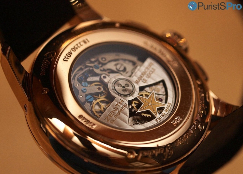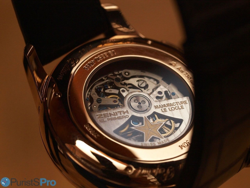 On the back side a very familiar view with some added spice: The Zenith caliber