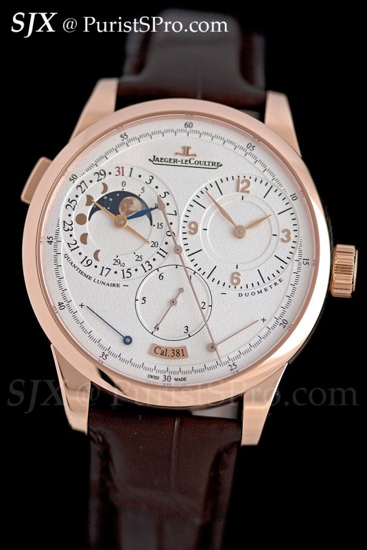 The other new Duometre watch is the Quantieme Lunaire in a smaller, 40.5 mm rose gold case. In this watch one gear train is for the time and the other for the calendar and lightning seconds.