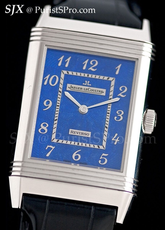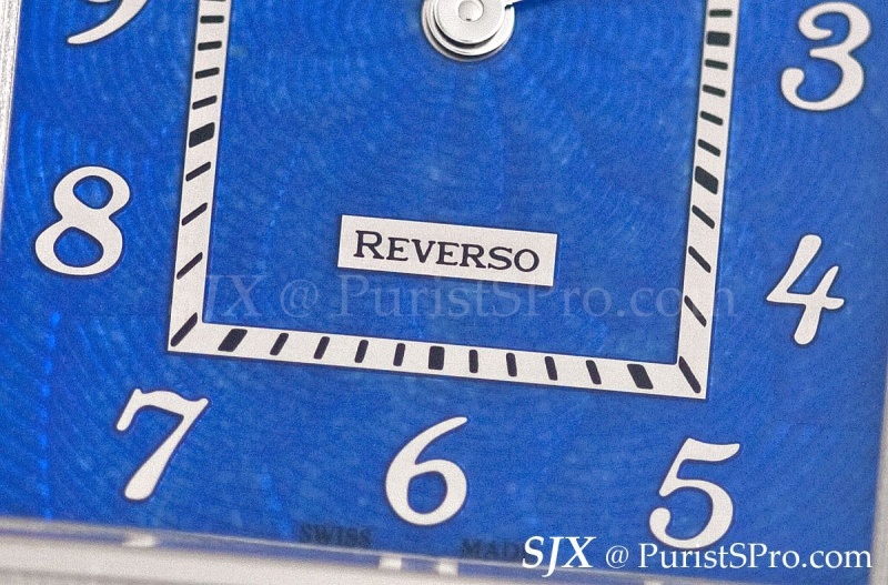 Last is the Grande Reverso Blue Enamel. This is in a slightly larger and thicker case than the 1931, measuring 48.5 mm by 30 mm. This 50 piece limited edition has a dial that is rich, translucent blue enamel over guilloche, with applied white gold numbers.