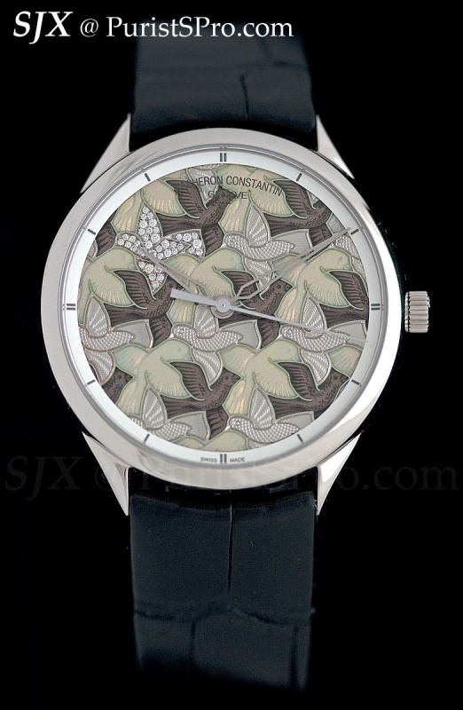 Three models similar to the Dove watch made for Only Watch 2011 make their debut this year. Part of the Métiers d’Art line, each of the them features all four traditional decorative arts of enamelling, engraving, gemsetting and guilloche. This trio is named ‘Les Univers Infinis’, because the dial motifs are MC Escher-inspired tessellations. Each is limited to 20 pieces with a white gold case. And fortunately there is no tessellated dragon watch.
