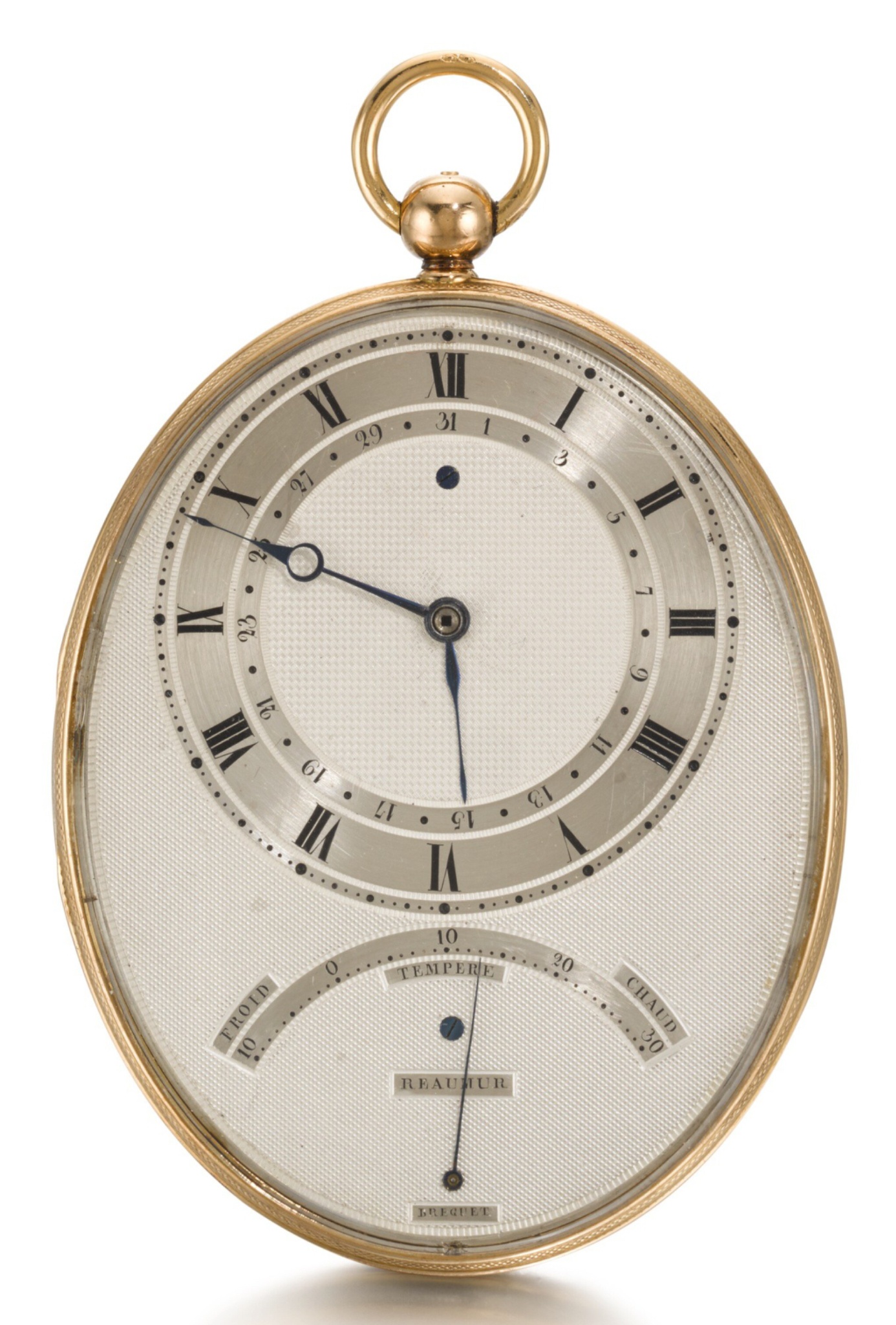 A/ THE SOURCE OF INSPIRATION: the OVAL POCKET WATCH n° 1682/4761 by ABRAHAM-LOUIS BREGUET featuring a THERMOMETER
