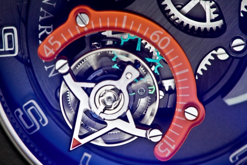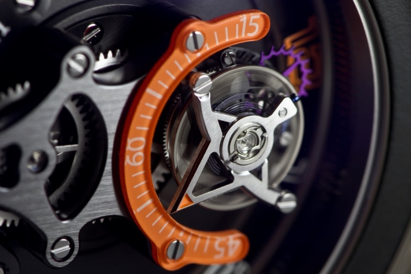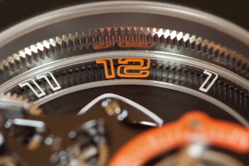 Well its now 2012 and after a couple of months wait, my new baby 'Devil' was delivered to me last week in Geneva... so I thought I would share a few photos of it. I am sure those who know me will not be surprised that it is orange and of course not your normal conventional watch, but this one is a lot smaller than my other machines! I think it fits in well with the others in my collection and maybe is a little more on the classical side, but overall am pleased with the way it turned out.