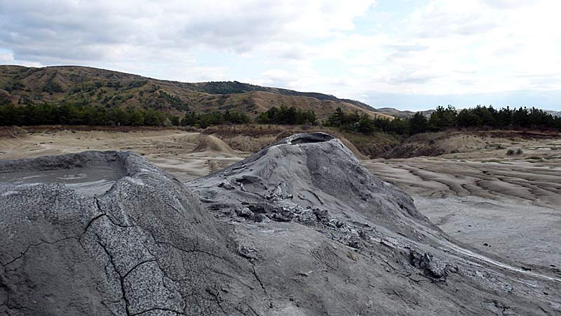 Without economic importance, the mud volcanoes have been left alone, and only since 2005 they are accessible by a paved road. Instead of spitting fire, lava and smoke, these small volcanoes thankfully limit themselves to lazily bubbling gas in small ponds of mud. So other than receiving a rather unusual skin cream coat, a jump into the craters would not cause any harm.