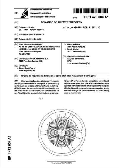 ) about a flat hairspring with an outer terminal end allowing for concentric developement throughout the entire amplitude - it may be considered the base for the later patents. Described are different approaches, with or without a sort of "dogleg" but common to all is a specific portion towards the outer end which is slightly thicker - it could be said that this part replaces the traditional upwards bent overcoil: