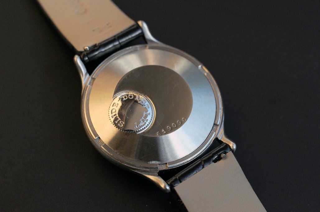The absence of the crown makes the watch look very symmetric and well balanced.