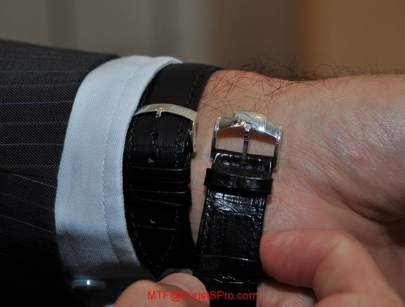 The new pin buckle (right) is exclusive to the new Altiplano 43 mm watch compared with the old model (left).