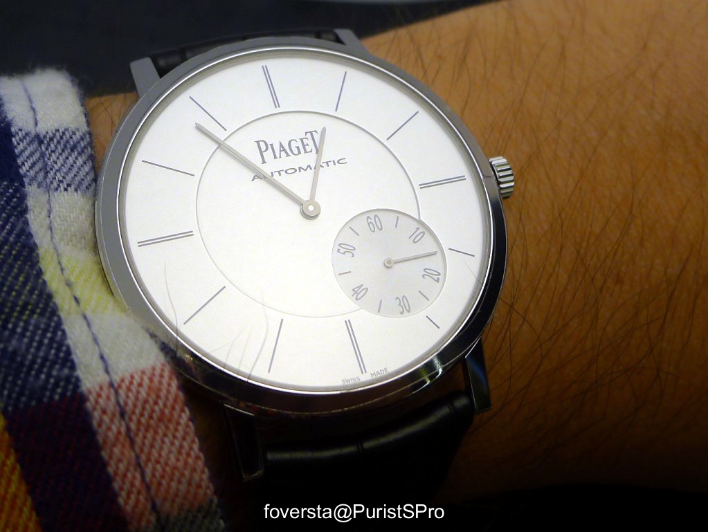 As I said before, the size is still ok on the wrist: the watch is clearly wearable. But from an aesthetical point of view, a more contained case would have been better even if I understand the idea behind. Thanks to this addition, Piaget proposes different sizes for its Altiplano: 38,40,43mm... and anybody may find his most suitable size.