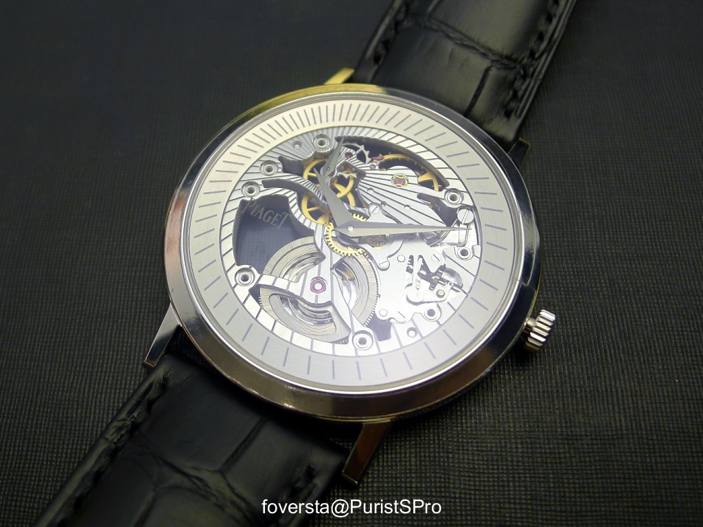 First of all, the new automatic Altiplano Skeleton with its micro-rotor movement is so gorgeous that this one doesn't seem to achieve the same level of perfection.