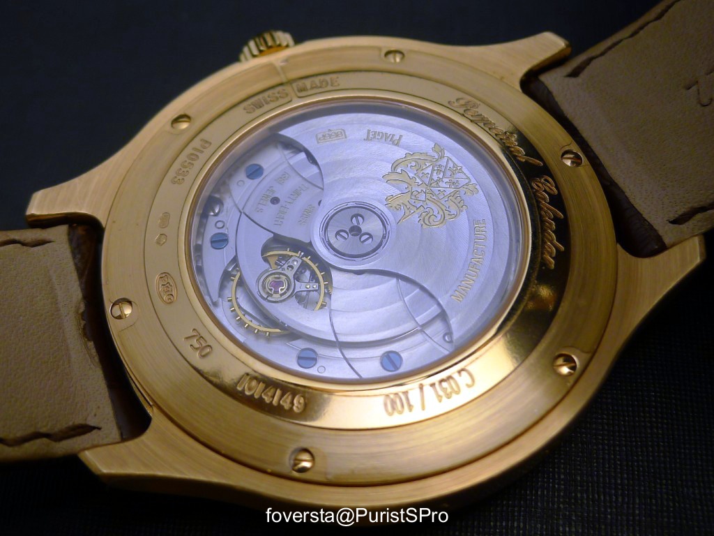 Movement is the 860P which features the usual finishings style from Piaget: flawless and sober. Moonphase accuracy is one day of difference every 122 years.