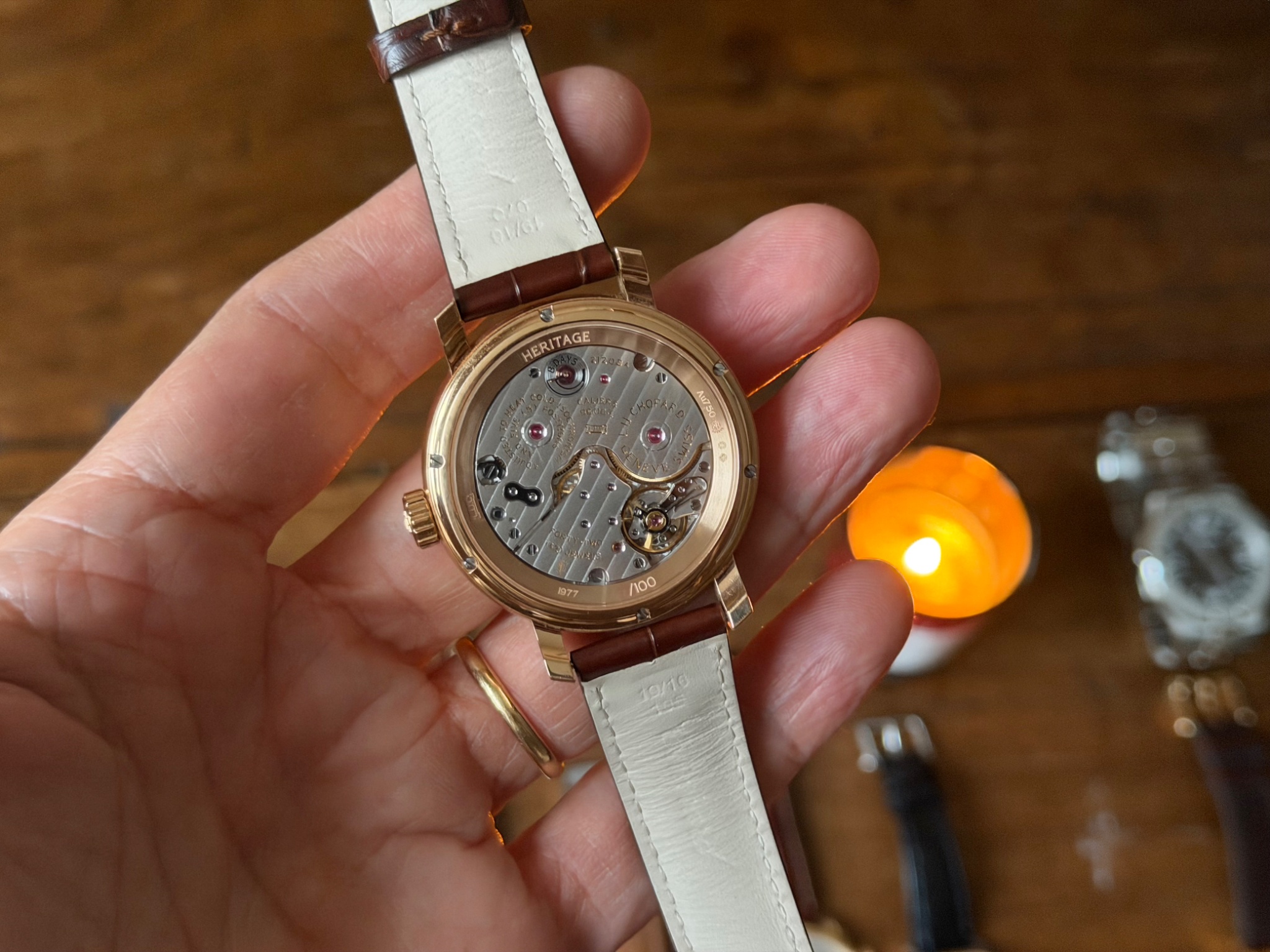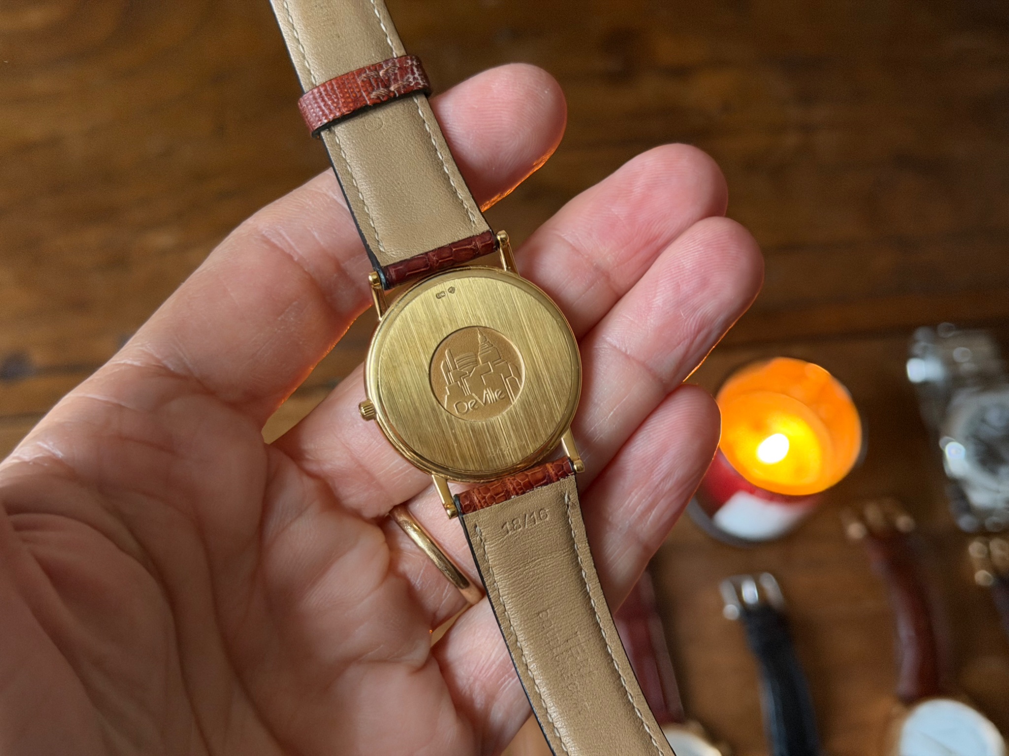 It has a hand-wound caliber and, as I loved winding and wearing it, she ended up giving it to me. I was around 10.