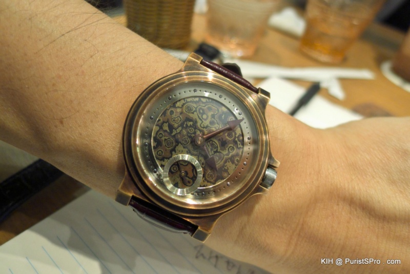 The second prototype.  A bit reddish color overall by adding a bit more copper in the dial composition.  More oxidized case.