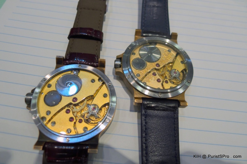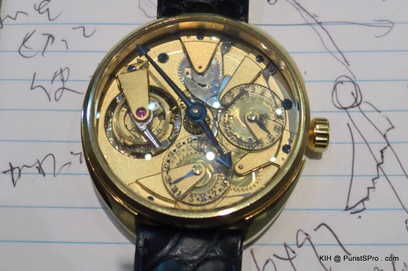 The second prototype has different finish pattern on the barrel gear, and a counterweight has been attached to the hairspring to eliminate the position difference - the other movement prototype at his atelier is now showing 3 sec deviation per day at ANY position.  The theory, logic and implementation are all classified - I heard it, but sorry, I can't disclose.