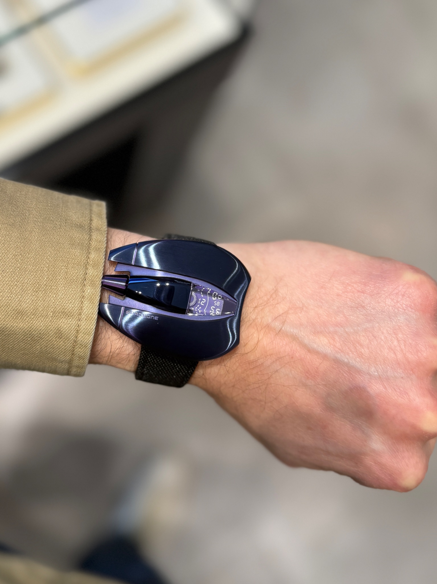 The Jumping Hour was eye catching in all its purple glory. But it was very top heavy (steel case) and would not sit steady on my wrist. But there is a titanium version and that would be the right choice in my opinion.