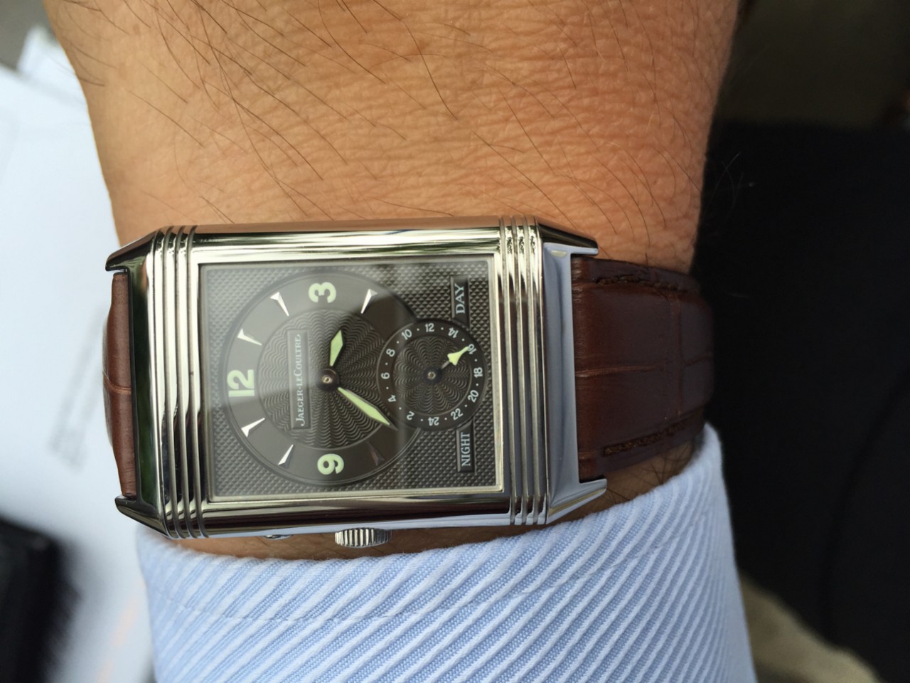 Hi Nice photos of both sides. Have to agree about pusher - but I am biased as have original version too. Like your shots with original ostrich strap - think they work really well with a Reverso. On the newer bigger version like how they integrated all the...