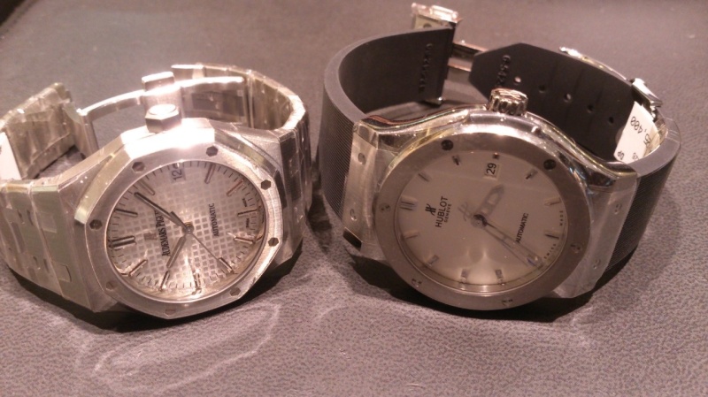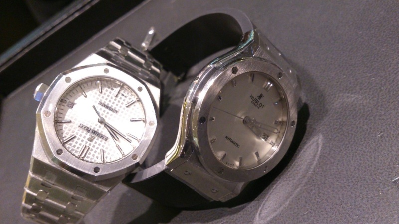 Side by side. Just very similar, but going by just design and dial, I prefer the Hublot. Would be better if there was some lume though.