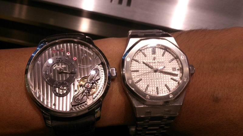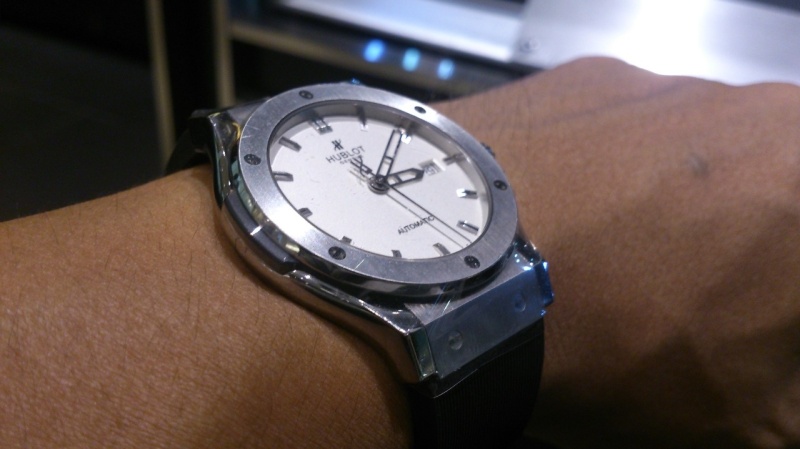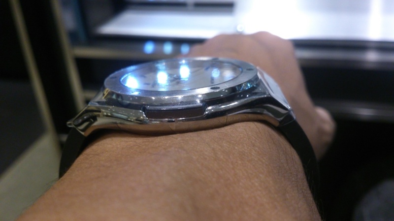 Definitely oozing class and says a different story than the Hublot - also draws more attention because of the way light plays off that dial. The weight is significant, contributed by the steel bracelet, but then again, if I did get this one, it would be with the steel bracelet because I dislike non-standard lugs for straps although straps are my preference over bracelets. The build is as close to perfect as one can get IMO. Can't find anything wrong about it, from size, finishing and wear comfort.