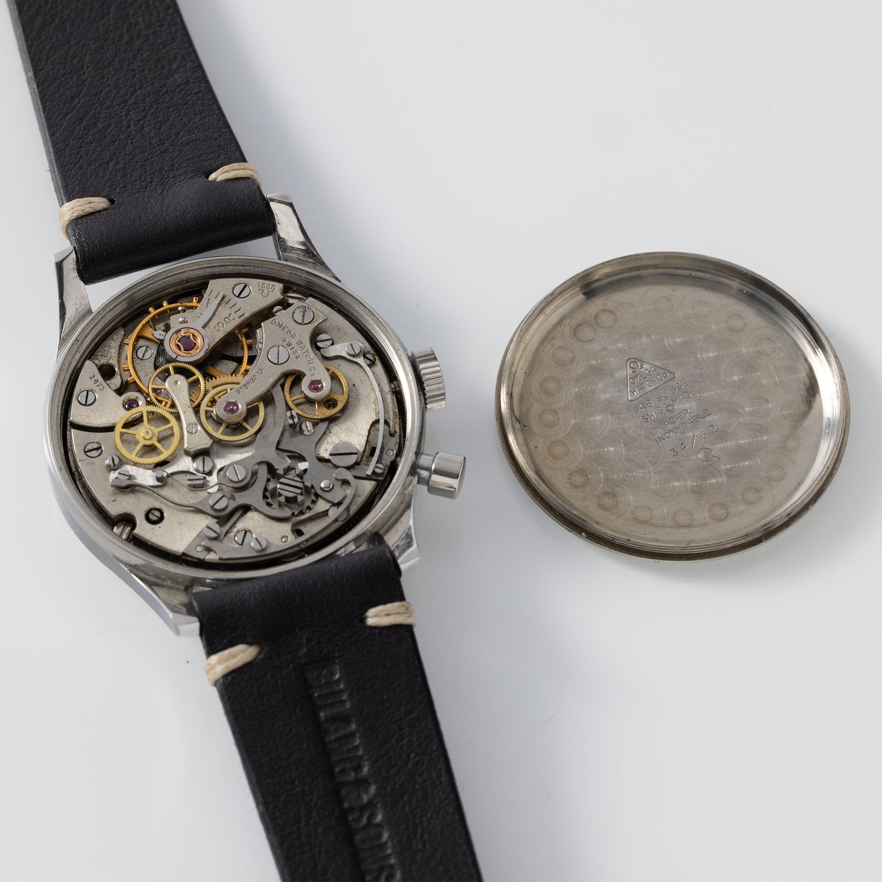 Some of you know these chronographs much better than I do. So I will just say that they were ordered by the RCAF from different manufacturers (Birks, Breitling, Omega, Rodania) and that several of them have a "sterile" dial (without logo).