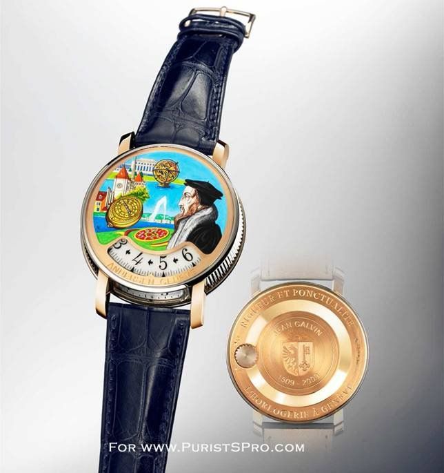 Now, in order to commemorate the 500th Anniversary of CALVIN'S Birthday and to recall his influence on respecting rigorously the hour and the minute, ANDERSEN GENEVE is presenting
