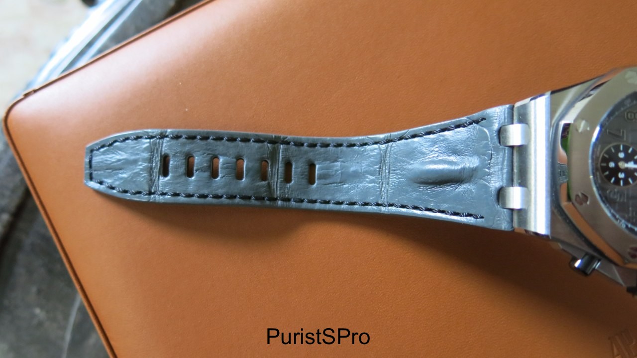 The alligator strap itself is extremely pliable, and definitely not as stiff in the horn area as older AP hornback straps. As always, the quality is exceptional.