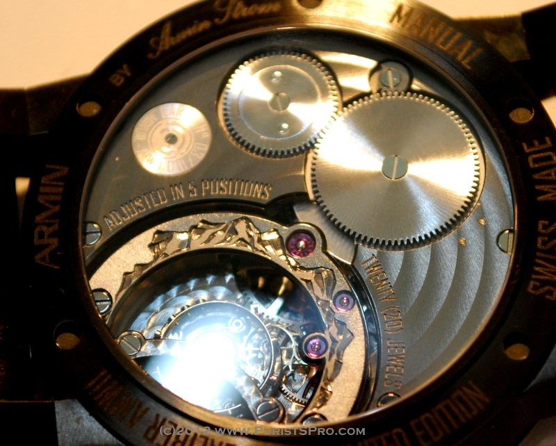 - The "Armin Racing" models use special versions of the in-house movements using materials from F1 cars as well as some models with ETA movements.