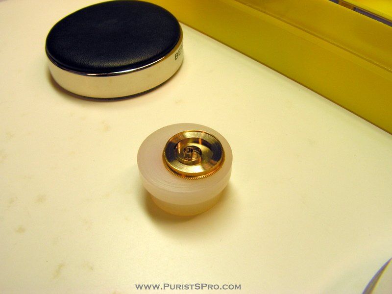 The barrel is made of a special kind of brass that allows the direct gearing of brass to brass between the two barrels of the new movement. As you know, I am sure, it is generally not allowed that the pinion and wheel of a gear pair are of the same material as same materials have higher friction and faster wear. This special brass alloy, however, allows brass to brass gearing.