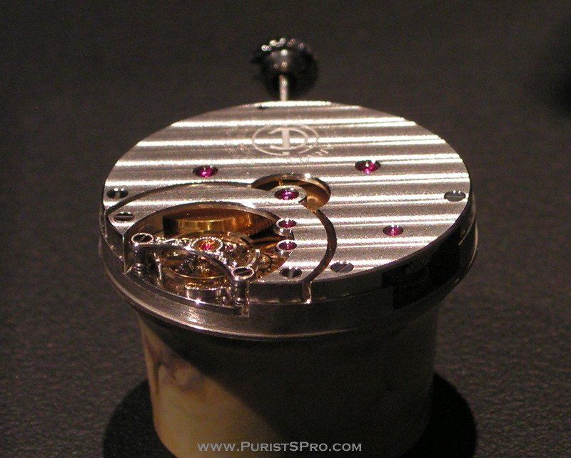 From the back the movement has the look of an old pocket watch and no winding mechanism can be seen. The balance is not large, but turning at a leisurely 18’000 A/h.