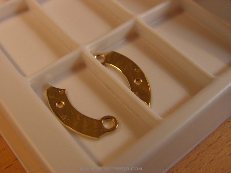 - Screwed balance with gold inertia screws, the timing screws are in steel.