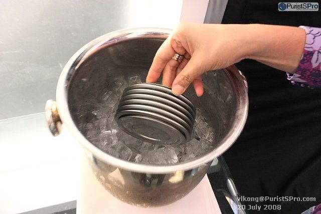 The setup, from the left, the brass cover (which houses the metallic chamber), the metallic chamber & a bucket of ice.
