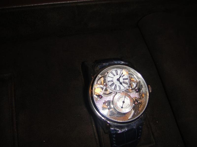Last but certainly not least, my personal favorite of the night. A Jules Audemars minute repeater watch with jumping hours. This watch is stunning in person as you could imagine. At 43mm's it is substantial for the type of watch it is but I really like it. The piece was actually inspired by a pocket watch made by Audemars many years ago. I'd love to own this one someday!