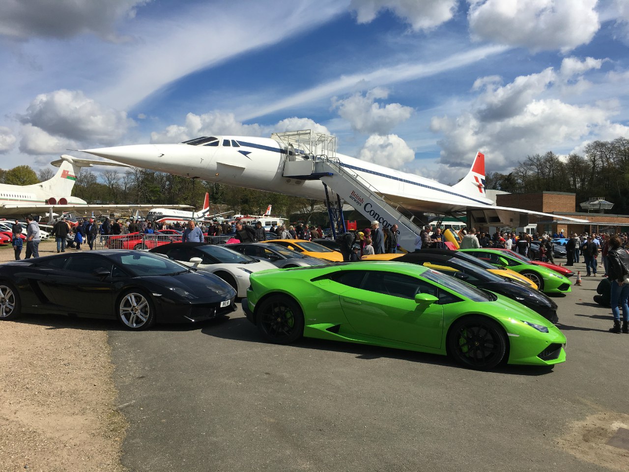 Lamborghini's beneath Concorde...speed demons each in their own right