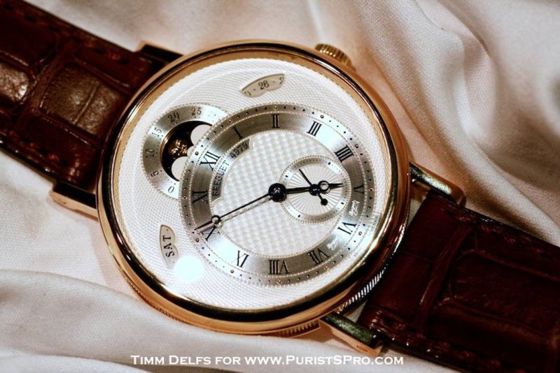 There is a completely new "Classique Grande Complication" in white gold featuring a minute repeater.  With its 42 mm case it is comparably large for a Breguet watch.  Its manually wound movement beats at a rate of 18'000 a/h.