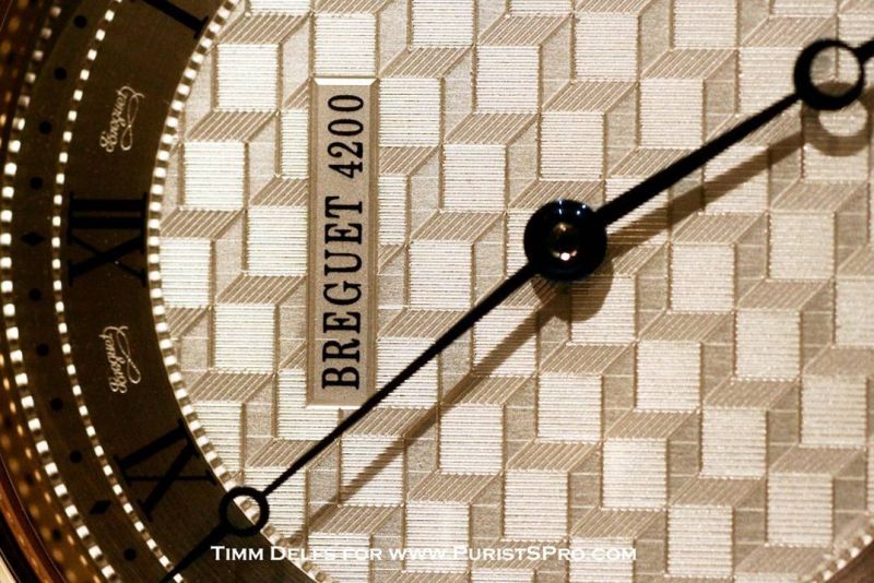 The dial of this Breguet minute repeater has been set pave with inversed cut diamonds.