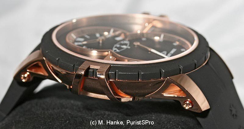 A new model is the beautiful Rattrapante, also with big date, presented in 18k pink gold with black enamel dial. Diameter is 45mm, and the edition is limited to 88 pieces.