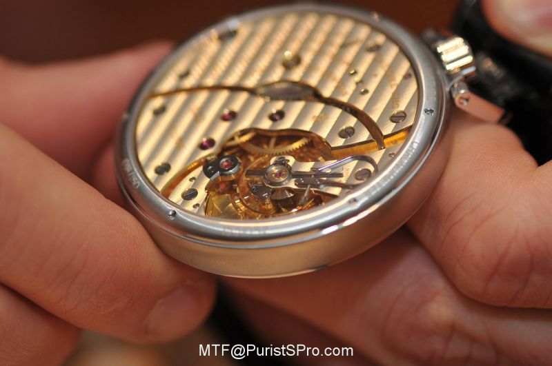 Although Mr Scheufele was stunned by our psychic abilities, he swore us to secrecy and explained a little more about the patrimony and modern need to train young watchmakers at the Geneva School of Watchmaking, that Chopard LUC supports. Young apprentices need to learn their craft on large movements and there were no quality movements produced anymore. The new Cal EHG (Ecole Horlogerie Geneve) has been used in tribute to Louis-Ulysse Chopard with 150 pieces that are finished to the ultra-luxe standards befitting the celebration. Finally, we can talk about it!