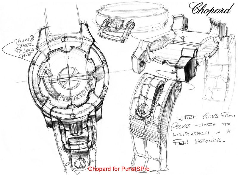 Furthermore, a link with the Scheufele family that founded the Eszeha brand and now continues the tradition of Chopard LUC as a family-run business was incorporated in the ‘LUC Louis-Ulysse – The Tribute’. In 1912, Karl Friedrich the First patented the adjustable lug & cradle system that switches the pocket watch to wrist watch in seconds. From a family that is deeply interested in motoring and classic car racing in the modern Mille Miglia races, my analogy is a convertible sports car!