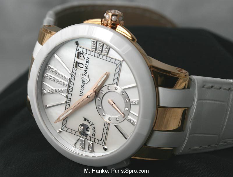 A highly attractive Ladies’ version with white mother-of-pearl dial, white ceramic parts and diamonds is also added to the line.