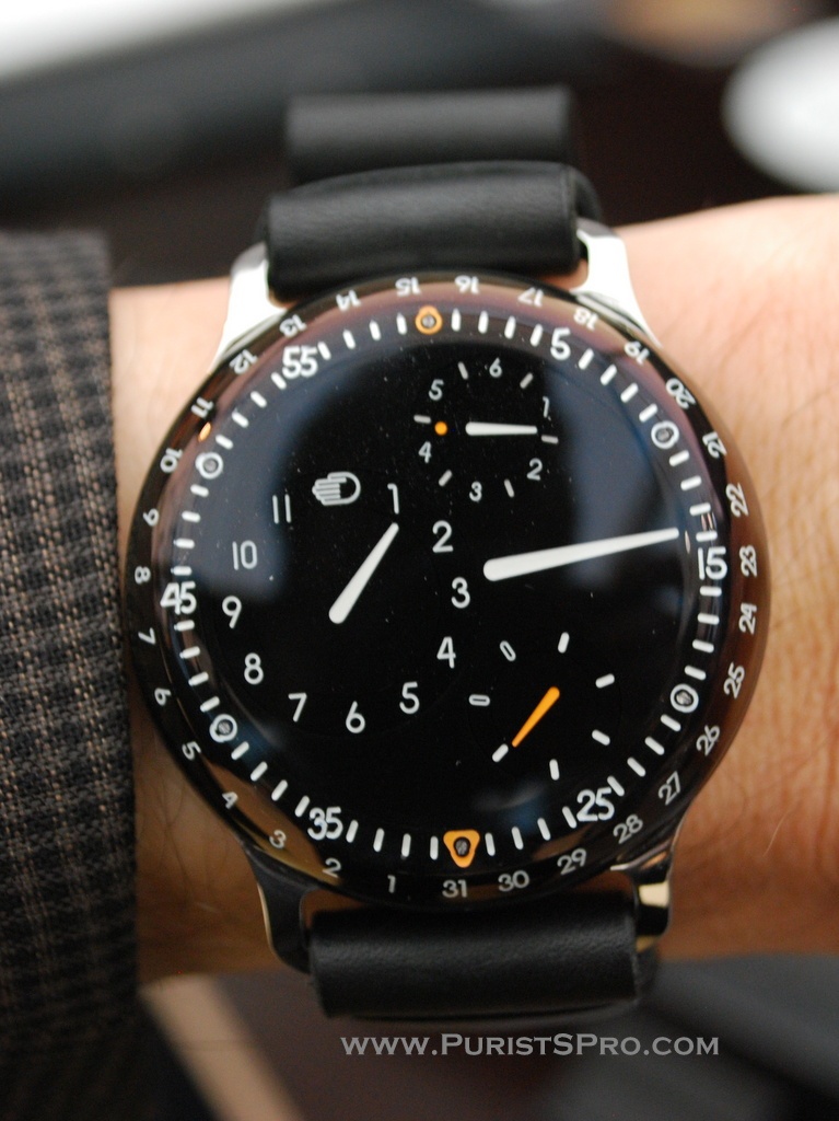 Of course we remember the Ressence watch from designer Benoit Mintiens. We have been following this watch for several years now with its rotating dial filling entirely the case diameter without any bezel. This year Mr. Mintiens has taken this design to the extreme with a new model, the Type 3, which has such a successful design that I have named it my BaselWorld 2013 Best of the Fair for Design.
