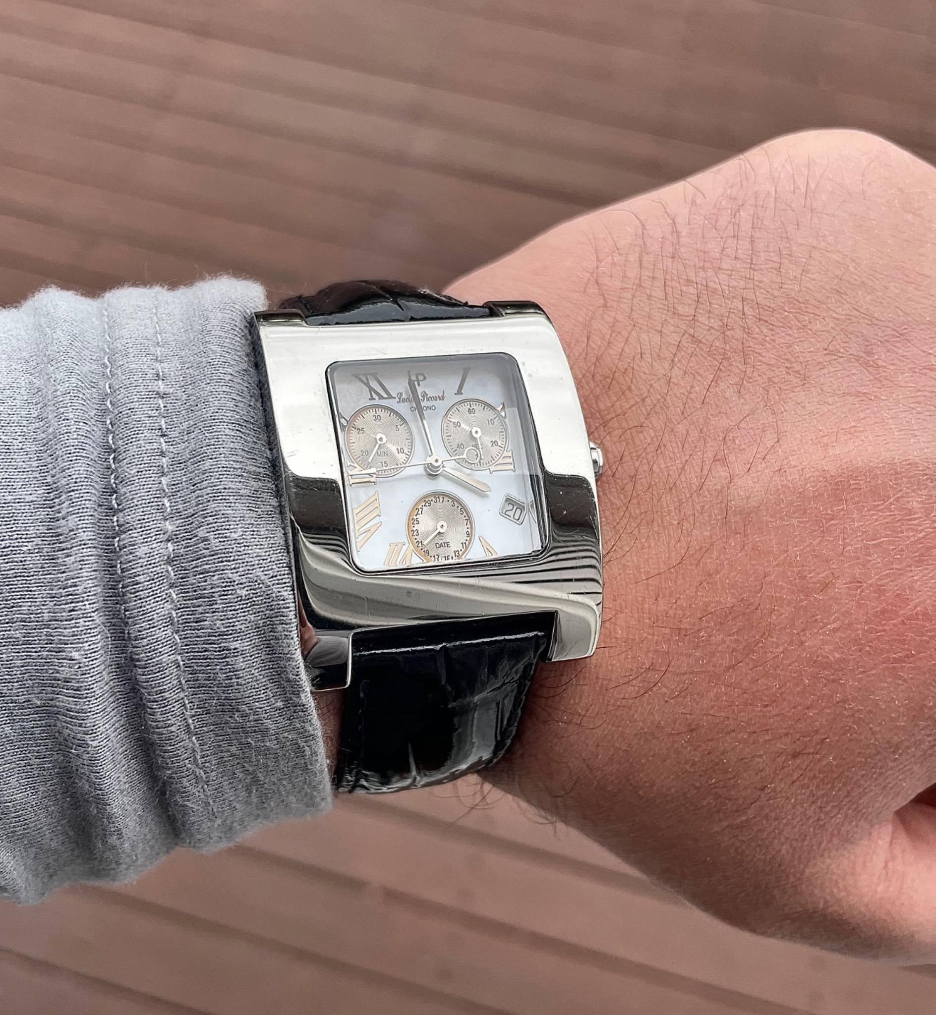 This Lucien Piccard watch was my first ‘big’ watch back when that trend was still a trend (as opposed to a norm). I don’t know much about the brand, but this piece stood out as a chronograph with its tough tank/block of steel look combined with a whitish MOP dial (not so evident in pictures). Anyway, the battery ran out and now It m wondering if I can easily change it myself or find a watch /jewelry repair shop to do it for me.