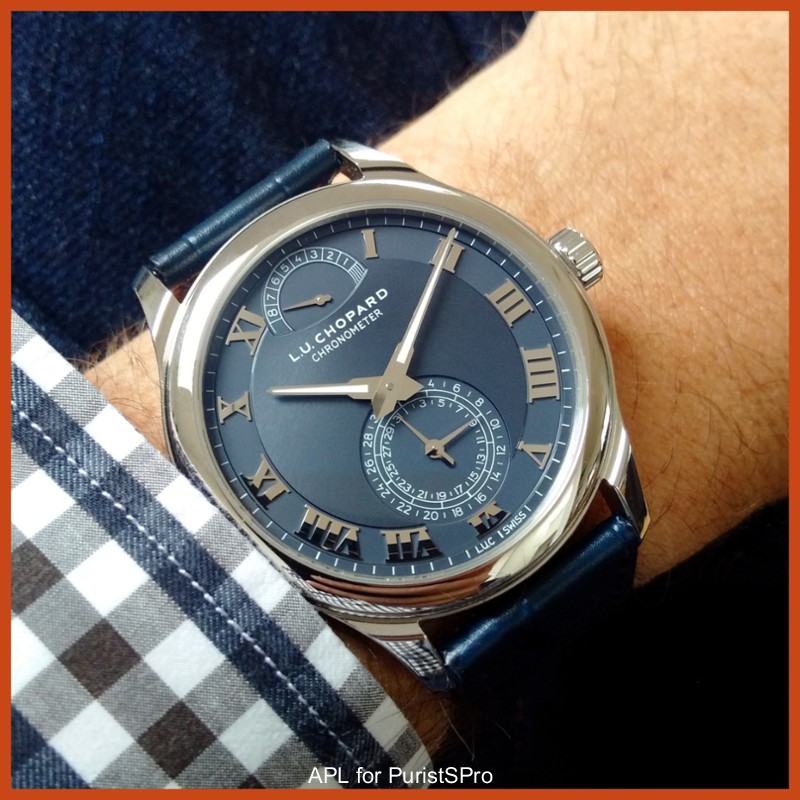 At one our regular gatherings in London, I was lucky enough to be introduced to a new model (from the 2015 Basel novelties), the LUC Quattro in platinum with a blue/slate coloured dial. I can only say that this certainly changed my mind on the quality of the products coming from the brand but also how their designs are developing. This is not an in-depth review, but thought I would share my thoughts as I was seriously impressed.