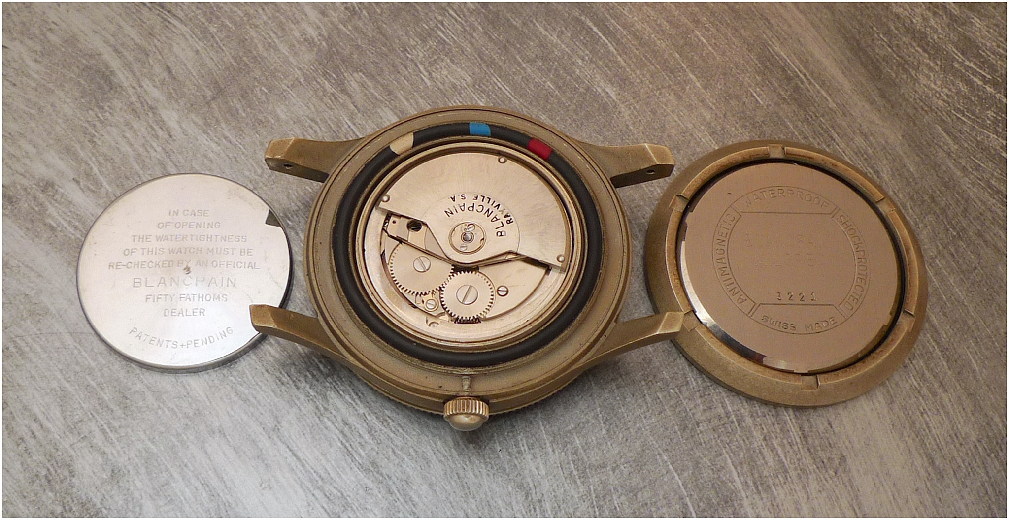 First of all, the funny thing is that Blancpain could have chosen a more famous vintage, such as a Tornek Rayville, or a " regular " Milspec. No, curiously, they opted for a watch which probably never went to production, but which rather was an aborted project, the Bronze Milspec US NAVY. An aborted project, because it seems that the US NAVY didn't accept it. My guess ( a personal guess, nothing less, nothing more ) is that Blancpain offered it circa 1968 to the US NAVY, but they didn't accept it, maybe because they didn't feel the need to get it as they still used the recent TR 900 ( more than 1000 pieces in two batches, in 1964 and 1966 ), or, this is another plausible hypothesis, Blancpain may have charged a bit too much for this watch.
