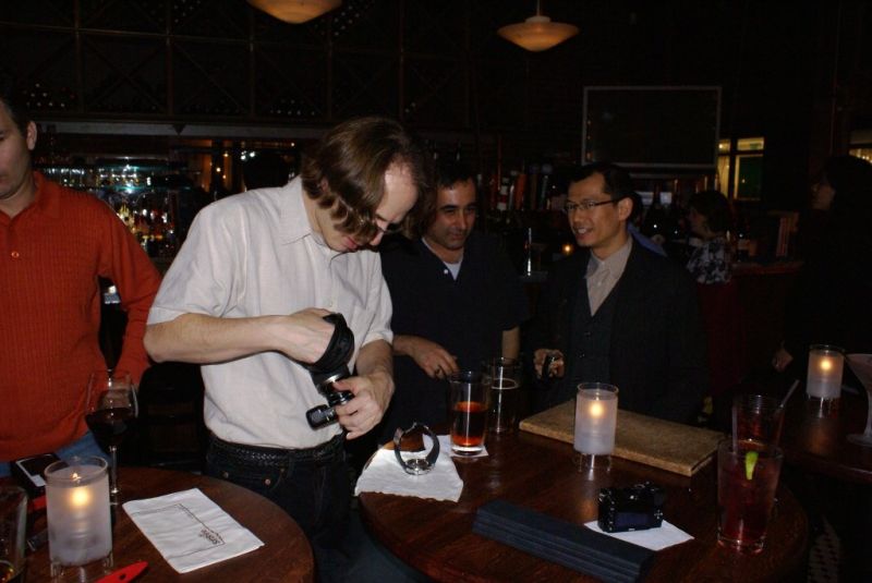 Art, Scott, and I arrive about an hour early to continue our sampling different Ales being offered in the city. To our pleasant surprise Mark was already there. I never met Mark before but when I saw a gentleman drinking a martini wearing a JLC master tourbillon I thought he must be a Purist....and I was right! Here is Scott admiring Mark's GO aviator