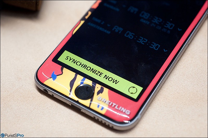 Followed by a touch on the 'synchronise now' icon the B55 immediately starts to move its hands to display the new timezone set - very neat, and it works seamlessly.