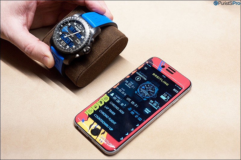 The smart phone, actually an iPhone using Breitling's dedicated Breitling B55 Connected app, serves merely as a remote control and a data-base for the timepiece itself.