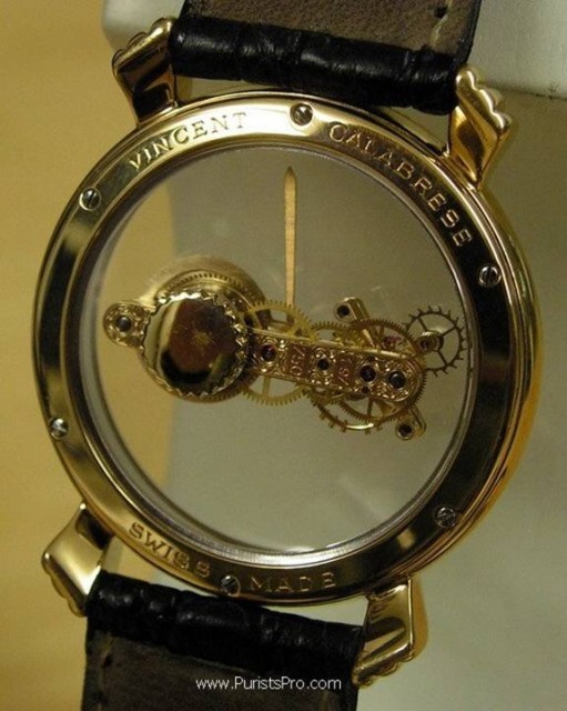 Vincent Calabrese, one of the founders of the AHCI 25 years ago, looks back on a long and important career as an independent in the watch industry. His designs signaled the beginning of the tourbillon craze that we are still witnesses to. The Blancpain 8 day tourbillon is a Calabrese design. Another emblematic design from Vincent Calabrese is the Corum Golden Bridge.