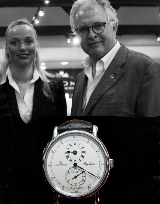 Here's the second watchmaker I met. Not the lady on the left, but her dad, Mr Gerd-R. Lang. And the iconic Chronoswiss watch I bought to wear for their visit.