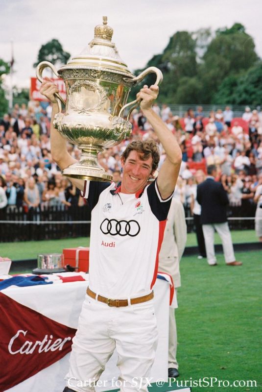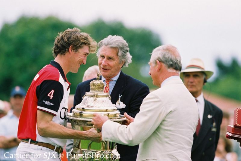 HRH Prince Charles, accompanied by Arnaud Bamberger MD of Cartier UK presenting the impressive Coronation Cup to England captain Luke Tomlinson
