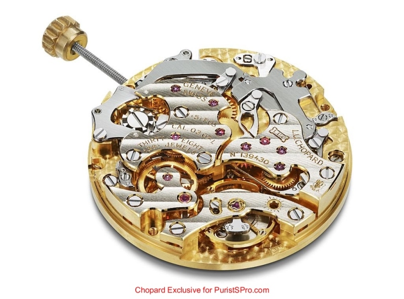 Chopard uses R&D project codes that are different from the final nomenclature of their movements. During development of their first automatic winding chronograph (LUC Chrono One), the R&D code was 'GT3' as a nod to the Mr Scheufele's admiration of the Porsche 911 GT-3.